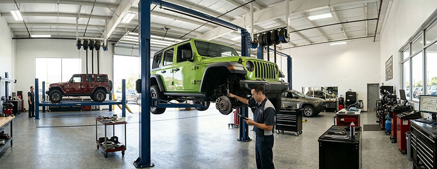 wiper replacement, and exterior light inspections. Routine service helps catch common Jeep problems before they turn into